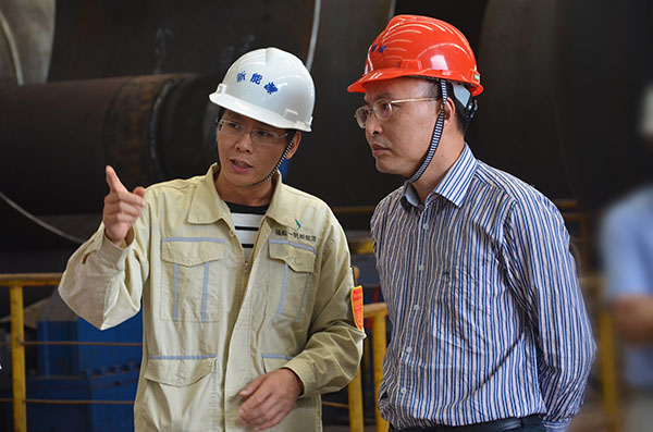 陈敬辉主席一行参观公司生产车间并到码头了解码头规划、水深、物流、吞吐量、建设步伐等等问题,细致全面地了解了公司整体规划及产能扩充方向。