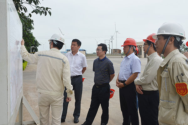 雷副总、曽副总一行人在集团陈副总的陪同下,依次参观了厂区平面规划图、轻塔生产车间、六鳌重装码头,对公司今后的规划布局、生产流程、管理制度作了全面细致了解。