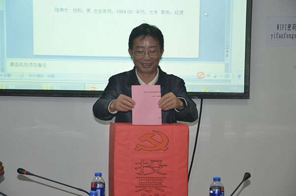 仪式完毕众人于多媒体会议室进行党支部委员会委员、书记会议事项,通过投票表决最终产生党支部委员三名,董事长关俊滨则担任公司新一届党支部书记。